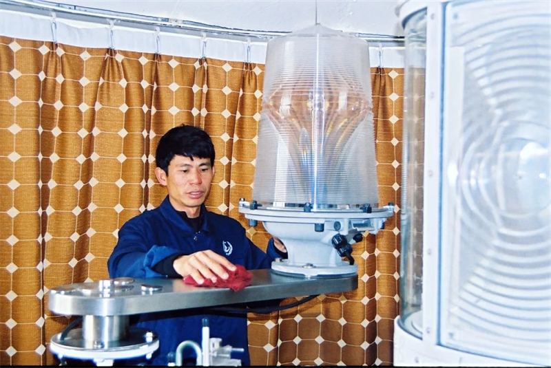 在黄灿明的精心养护下,灯塔设施洁净如新。广东省文明办供图