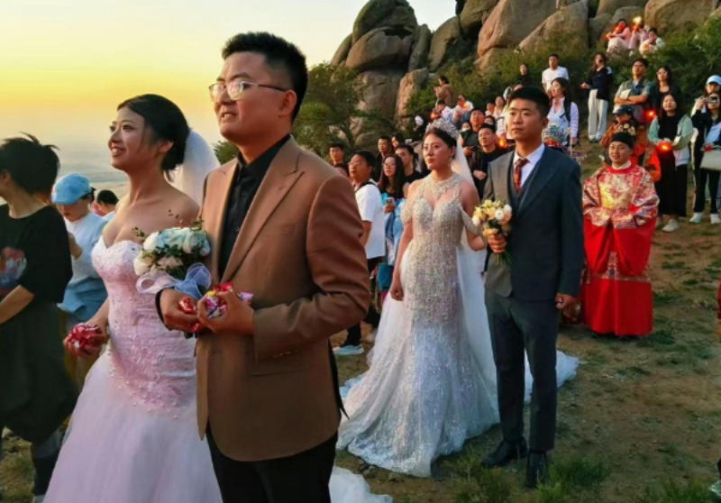 在银川市金凤区,9对新人在贺兰山的见证下,以大自然为媒,许下相守一生的誓言。宁夏文明网供图