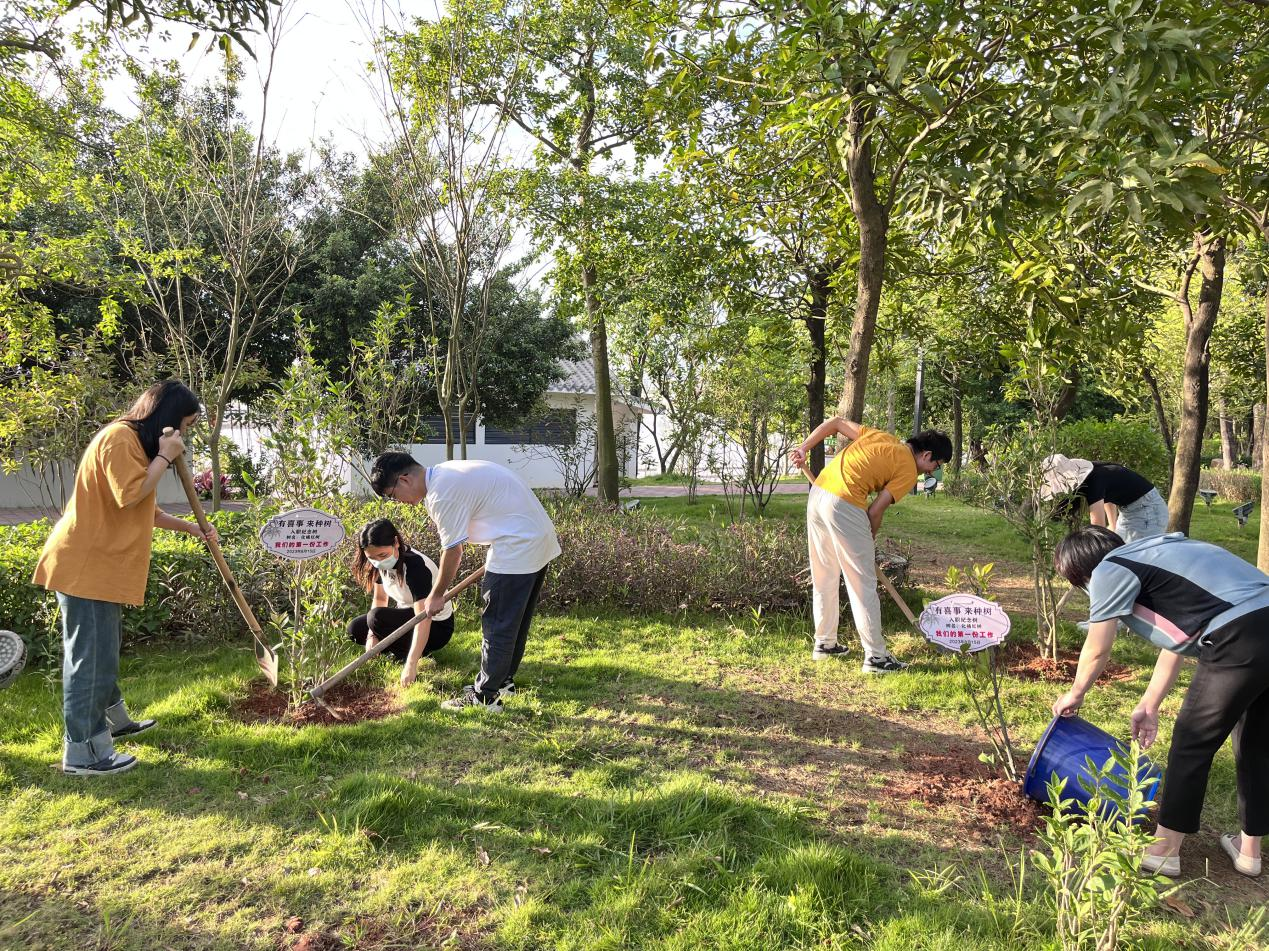 年轻人为庆祝找到人生第一份工作,相约植树。化州市文明办供图
