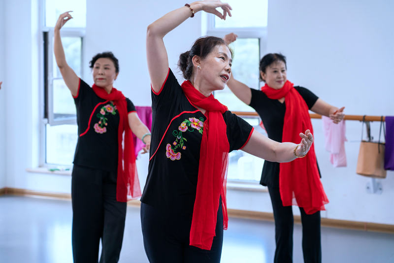 8月21日,河北省承德市双桥区丽水社区居民正在新时代文明实践站舞蹈室排练舞蹈。 新华网记者 钟奕 摄