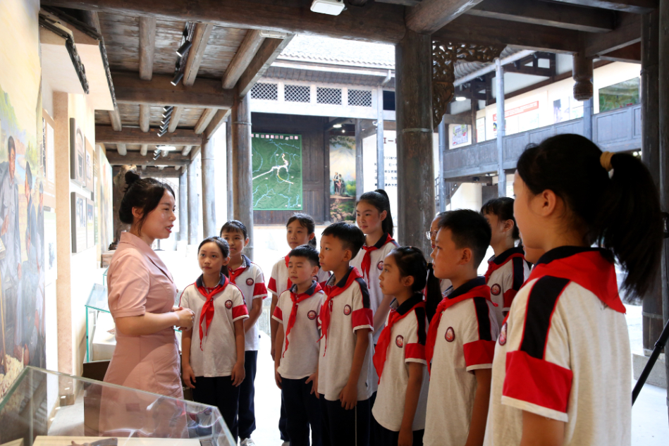 9月11日,在红一军团司令部旧址,石壕红军小学的师生们正在上红色思政课。新华网发(重庆市綦江区融媒体中心 张梦寒 摄)