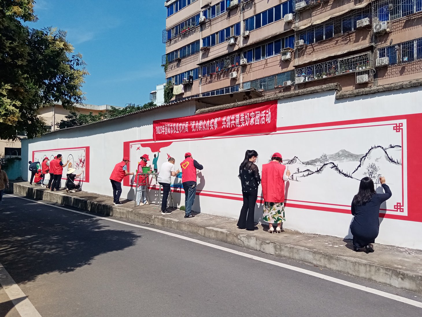 信阳市农业农村局为前卫社区绘制涂鸦墙。信阳市文明办供图