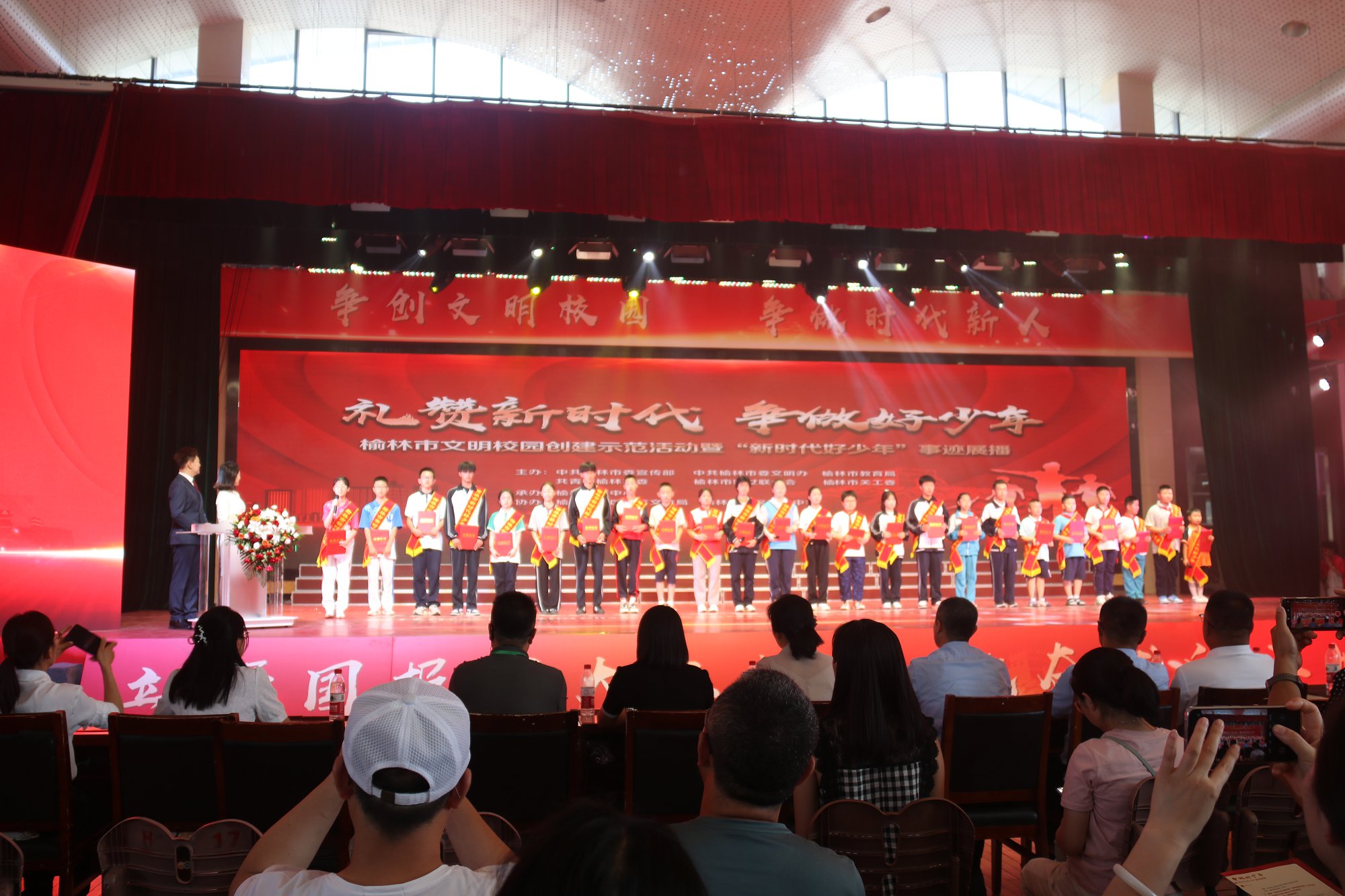 榆林市开展礼赞新时代 争做好少年—榆林市文明校园创建示范活动暨“新时代好少年”事迹展播。榆林市委宣传部供图