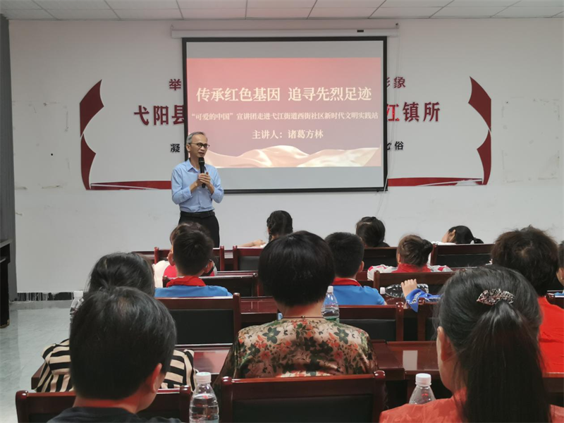 “方志敏是‘100位为新中国成立作出突出贡献的英雄模范人物’之一,是我们江西土生土长的英雄。各位居民、孩子们,这么一个伟大的英雄,他就在我们身边,就在我们家乡……”近日,“文明中国”主题采访记者组走进江西省上饶市弋阳县弋江街道西街社区新时代文明实践站,“可爱的中国”宣讲团成员、“江西好人”诸葛方林又一次讲起了方志敏的故事。宣讲会场虽然不大,但座无虚席,大家都认真聆听。