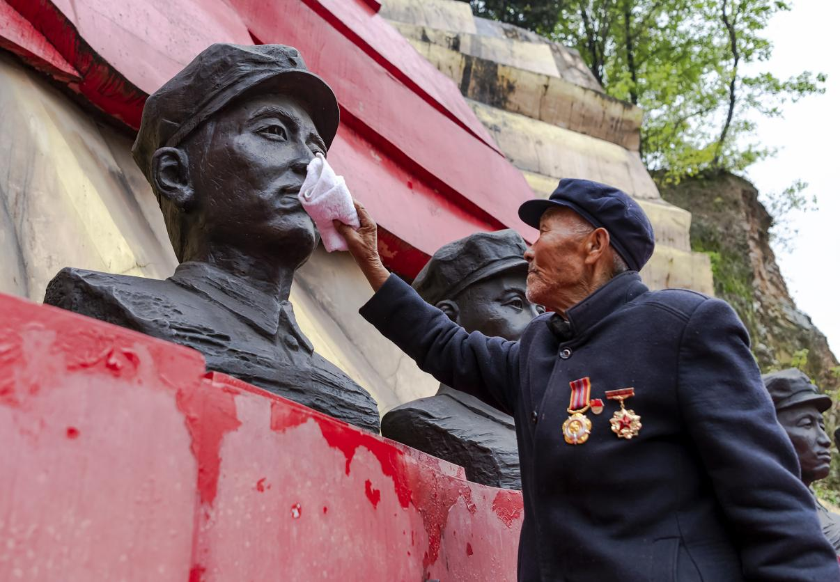 带着事先准备好的鲜花,扛着扫帚,沿着97级台阶走到墓园……“老朋友们,今天我又来看你们了。”在河南省信阳市光山县文殊乡花山村花山寨烈士陵园内,9名红二十五军将士的英魂长眠于此。烈士墓前,一位老人静静伫立,随后,他细心地将墓碑擦拭干净,步履蹒跚的身影被阳光拉长,宛如诉说着一段光阴的故事。
