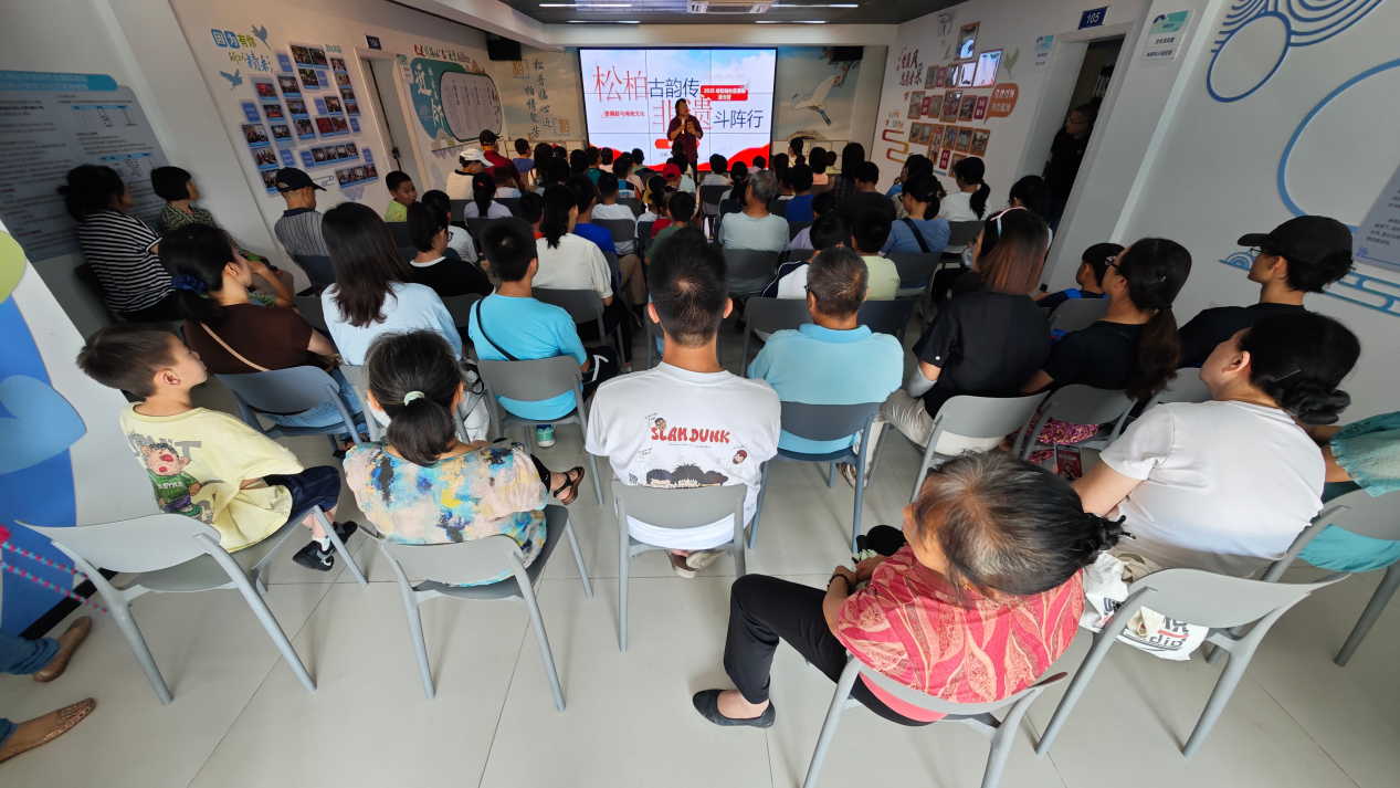 松柏社区新时代文明实践站里,社区居民聆听非遗文化讲座。新华网 刘默涵 摄